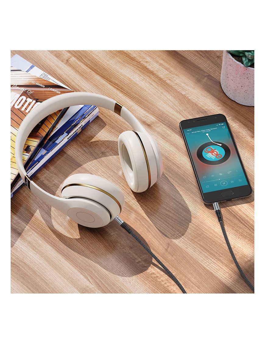 Cable AUX Hoco UPA26 de 3.5 mm a 3.5 mm, ideal para conectar equipos de audio, parlantes, autos y audífonos con entrada estándar. Resistente, flexible y con excelente transmisión de sonido.