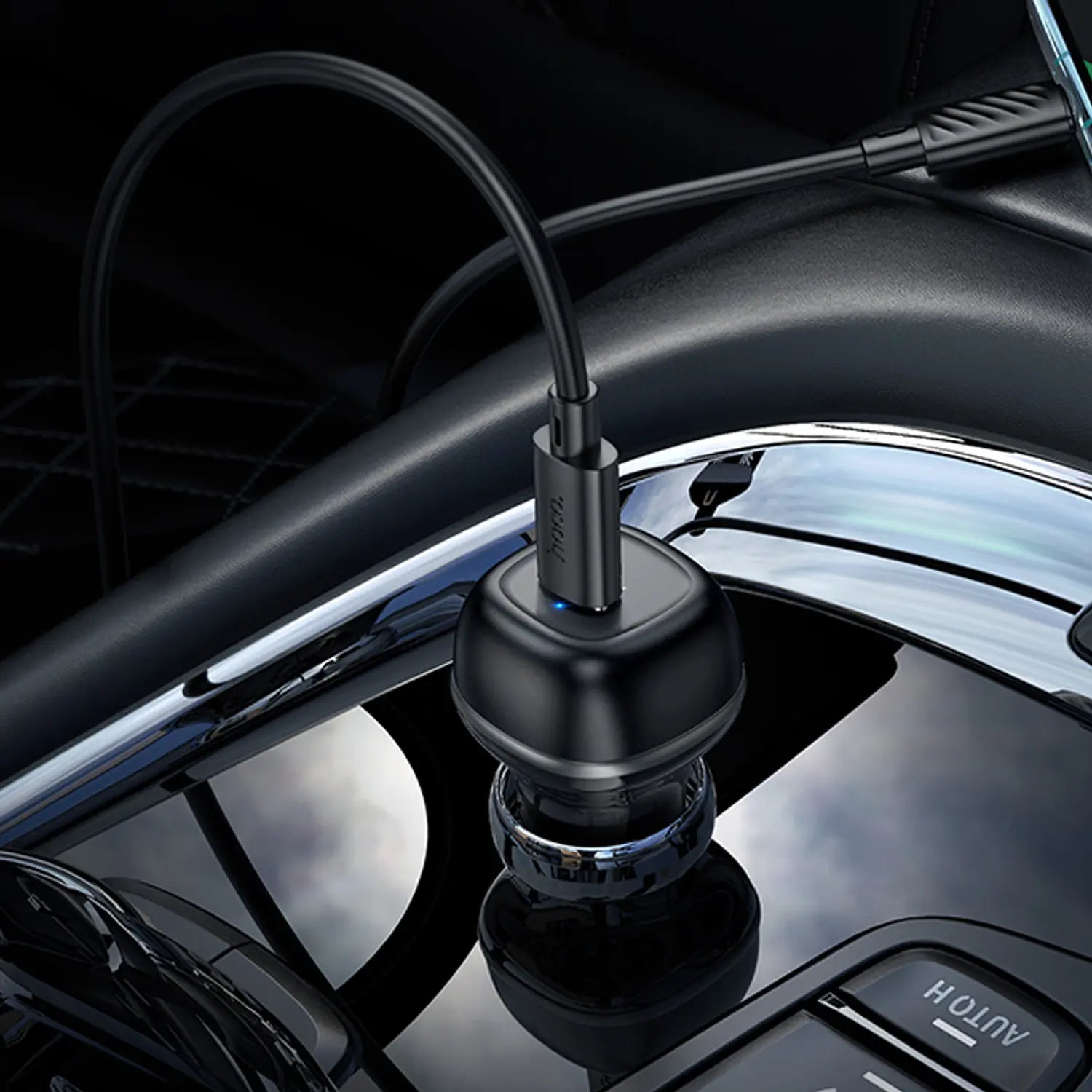 Cargador de Auto Hoco Z58 Rank con salida USB-C de 30W y tecnología de carga rápida PD. Incluye cable de carga rápida de 1 metro para dispositivos Apple.